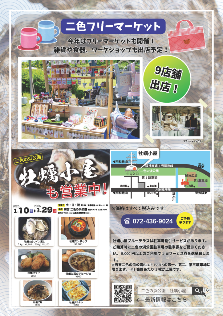 もちろん、二色の浜公園の牡蠣小屋ブルーテラスも同時営業!