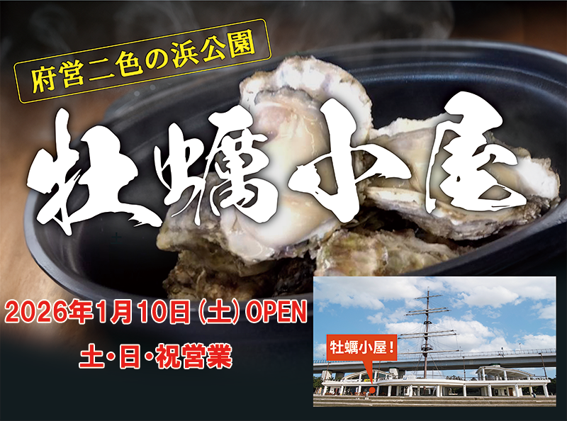 毎シーズンご好評の大阪府営二色の浜公園BLUE PARKの牡蠣小屋が今シーズンも登場します!!